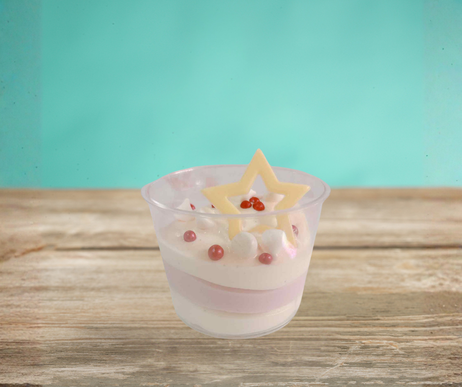 Een heerlijk dessertje helemaal in feestthema!een potje met een heerlijke combinatie van vanille & aardbeienijs!