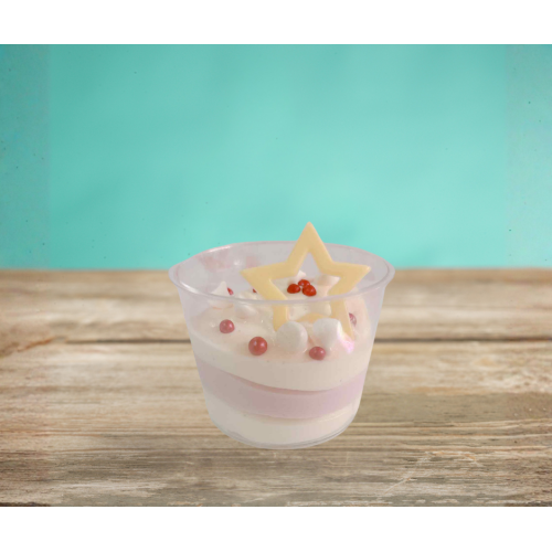 Een heerlijk dessertje helemaal in feestthema!een potje met een heerlijke combinatie van vanille & aardbeienijs!